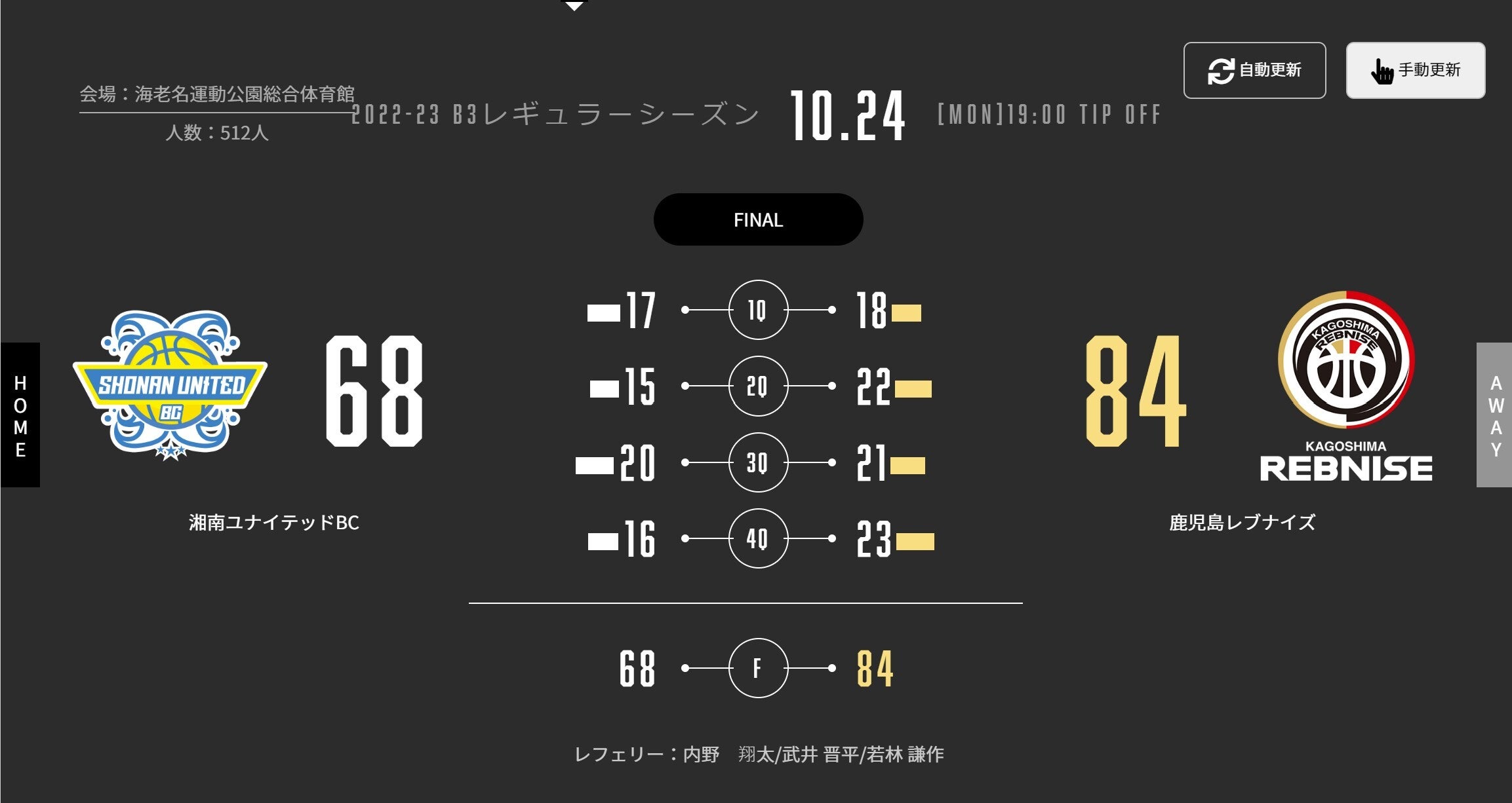 本日(10/24)、B3リーグ 2022-23シーズン 第4節 AYAW海老名運動公園体育館で湘南ユナイテッドBCと対戦しました。試合結果をお知らせします。