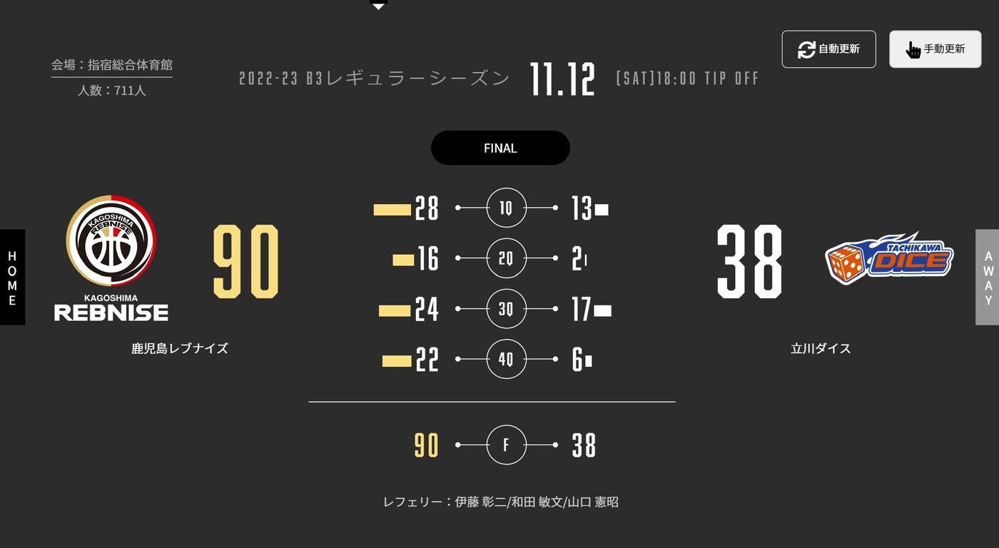 本日(11/12)、B3リーグ 2022-23シーズン 第6節 指宿総合体育館で立川ダイスと対戦しました。試合結果をお知らせします。