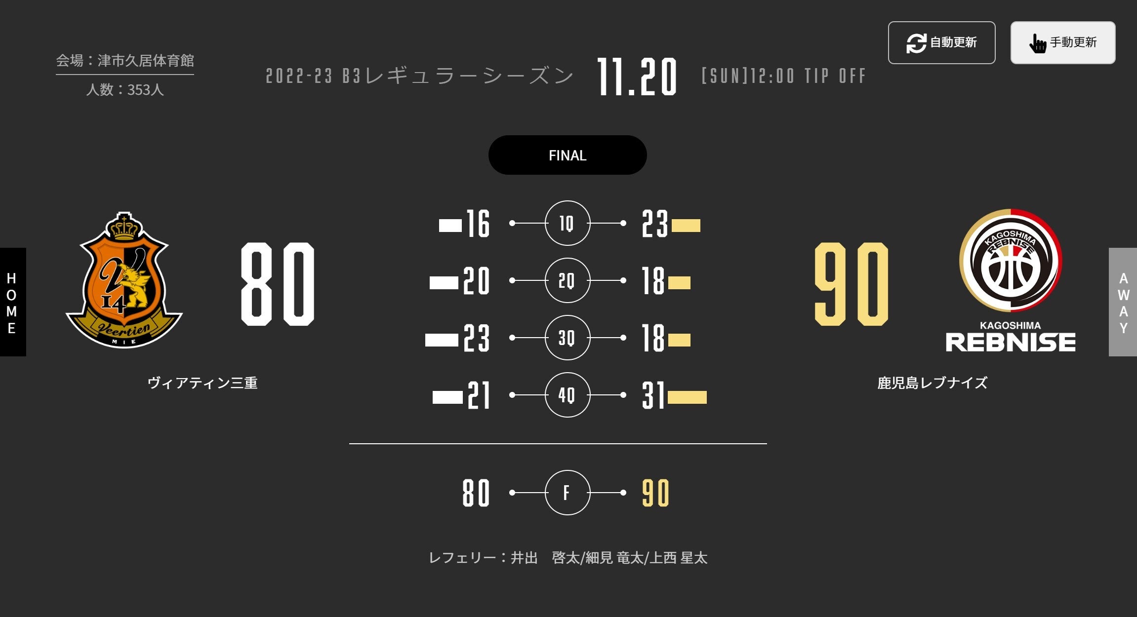 本日(11/20)、B3リーグ 2022-23シーズン 第7節 AWAY 津市久居体育館でヴィアティン三重と対戦しました。試合結果をお知らせします。