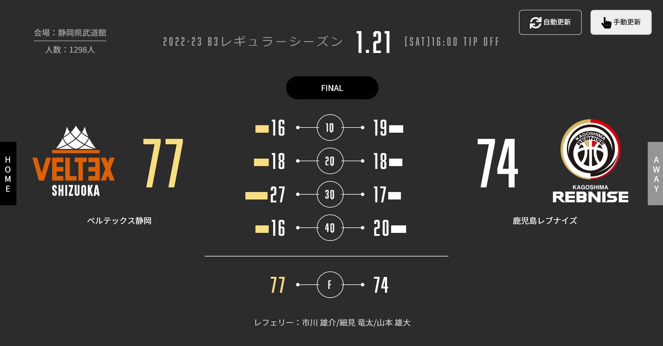 B3リーグ 2022-23シーズン 第15節(1月21日)vs静岡 試合結果のお知らせ