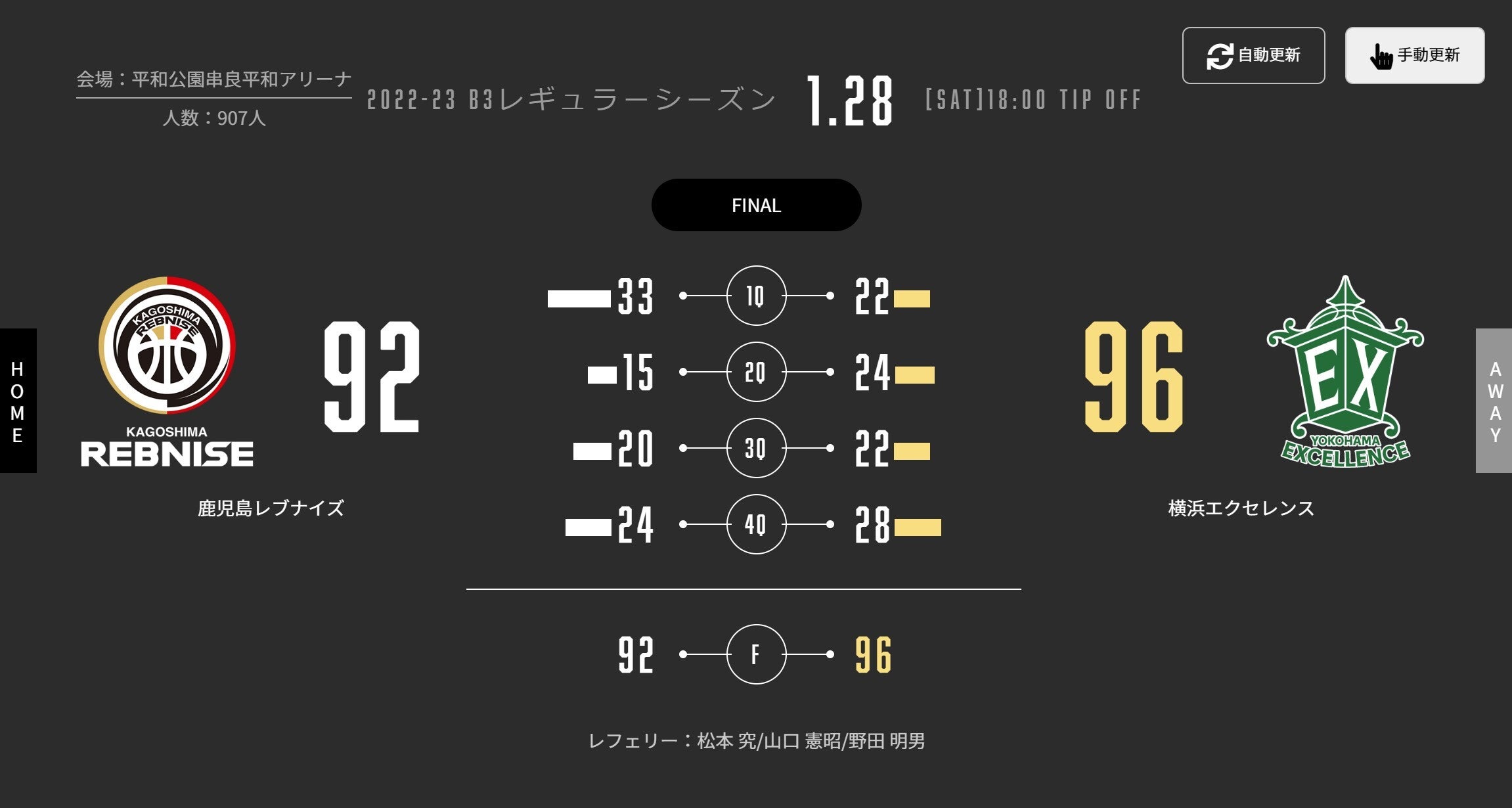 本日(1/28)、B3リーグ 2022-23シーズン 第16節 串良平和アリーナで横浜エクセレンスと対戦しました。