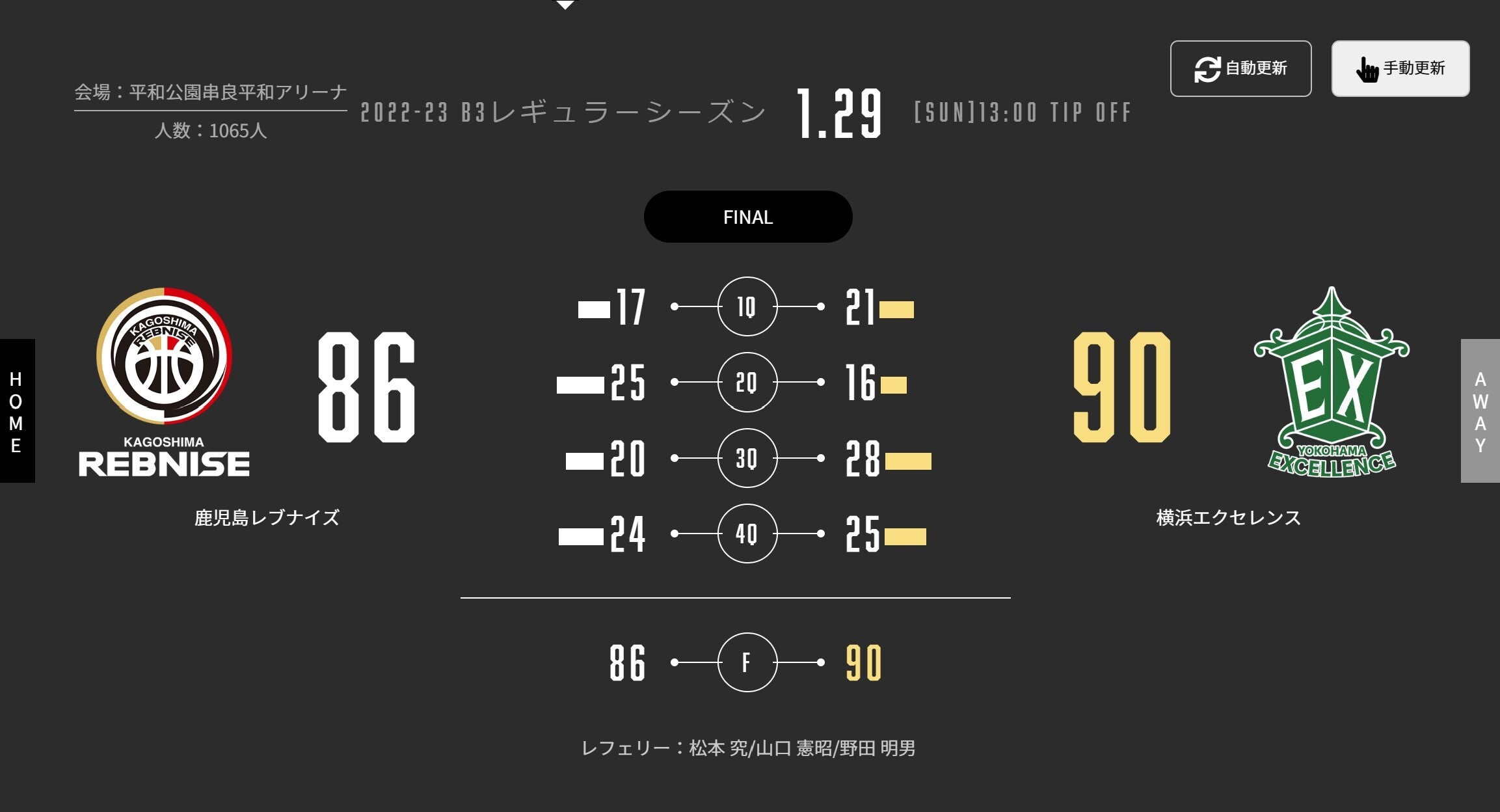 本日(1/29)、B3リーグ 2022-23シーズン 第16節 串良平和アリーナで横浜エクセレンスと対戦しました。試合結果をお知らせします。