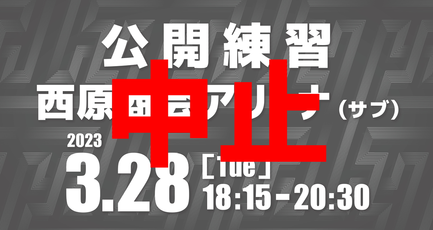 明日3月28日に開催を予定しておりました公開練習ですが、チームのコンディション調整のため大変急な決定となってしまいましたが、「中止」とさせていただきます。楽しみにしてくださっていた皆様には誠に申し訳ございませんが何卒ご理解の程よろしくお願いいたします。