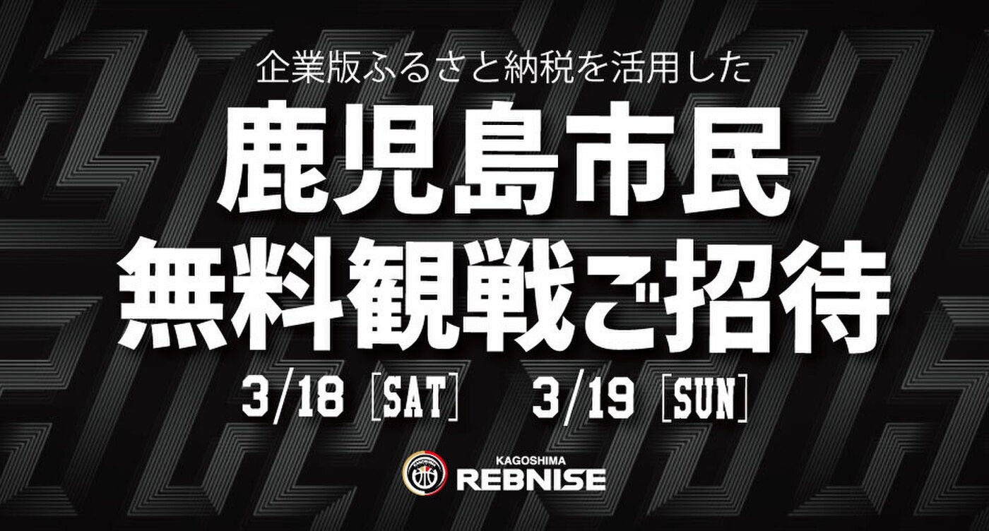 3月18日(土)、3月19日(日)ホームアリーナである西原商会アリーナで開催される「鹿児島レブナイズ vs 湘南ユナイテッドBC」の試合に、鹿児島市の企業版ふるさと納税を活用し鹿児島市民の皆さまを2階自由席へ無料ご招待いたします。