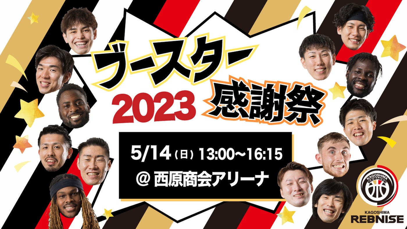 この度、鹿児島レブナイズでは、今シーズン支えていただいたブースターの皆さまに感謝を込めて5月14日(日)ホームアリーナの西原商会アリーナにて『ブースター感謝祭2023』を開催することとなりましたのでお知らせいたします。