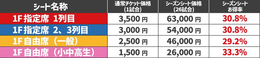 ご希望のお席でシーズン通して確保でき、毎回チケットを購入する手間も省けお得にご購入いただけます。