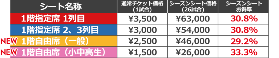 (一般販売)1階自由席・シーズンチケット【2023-24】