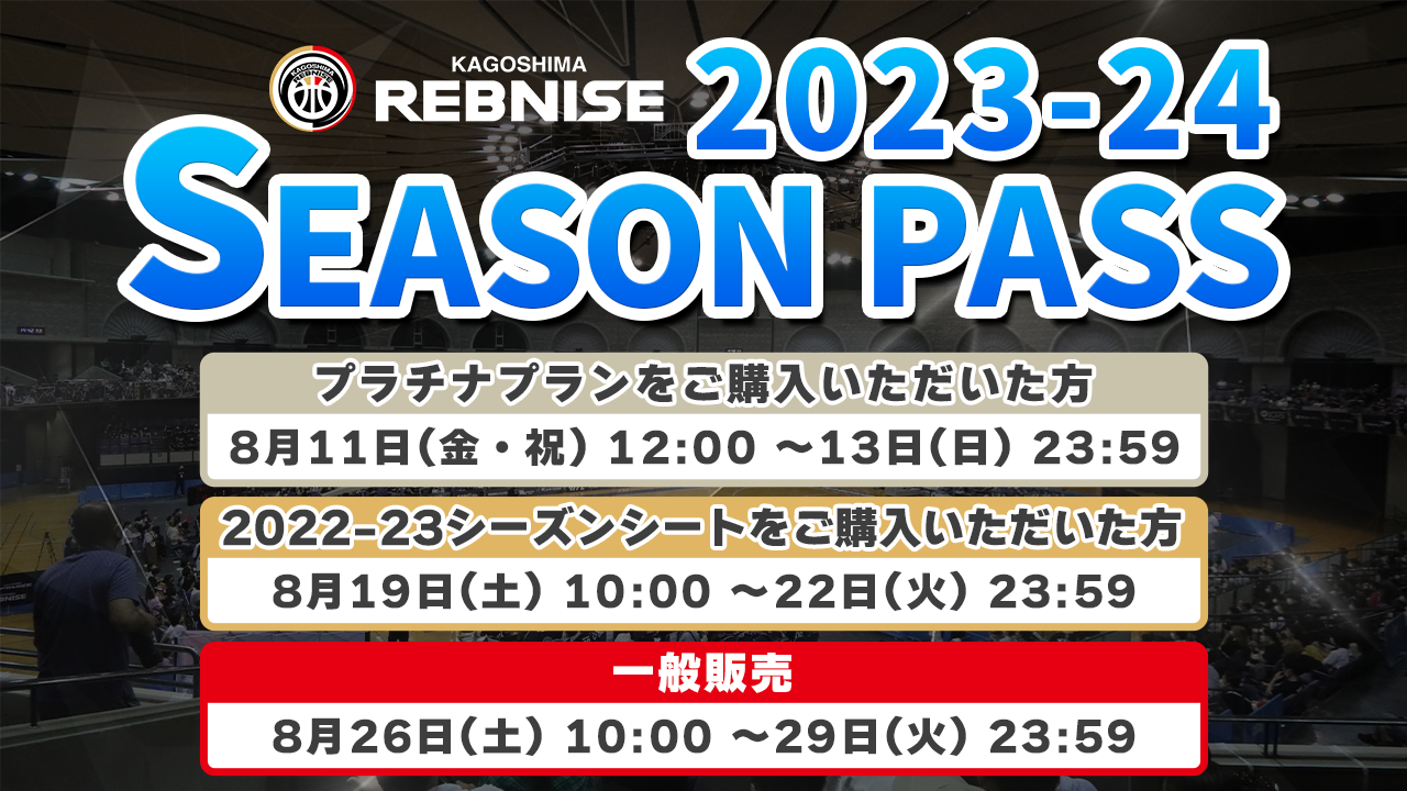 この度、鹿児島レブナイズでは、2023-24シーズンのホームゲームシーズンパスが下記の通り決定しましたのでお知らせいたします。