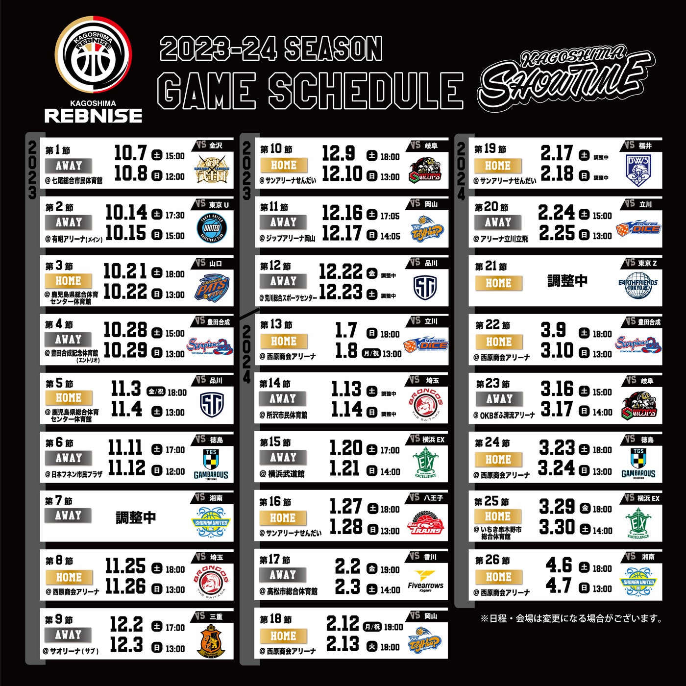 鹿児島レブナイズの2023-24シーズンの試合時間及び一部日程が決定しましたのでお知らせいたします。