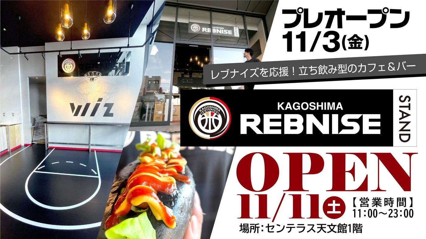 この度、鹿児島レブナイズでは、2023年11月11日(土)にセンテラス天文館1Fの路面店に「レブナイズスタンド」をOPENすることとなりましたのでお知らせいたします。「レブナイズスタンド」は、カフェ&バーで立食形式で交流しやすい店舗としていく予定です。