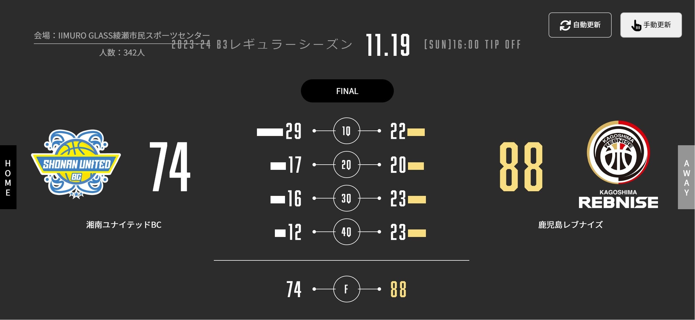 WIN!WIN!WIN!B3リーグ 2023-24シーズン 第7節 GAME1(11/19) 試合結果のお知らせ
