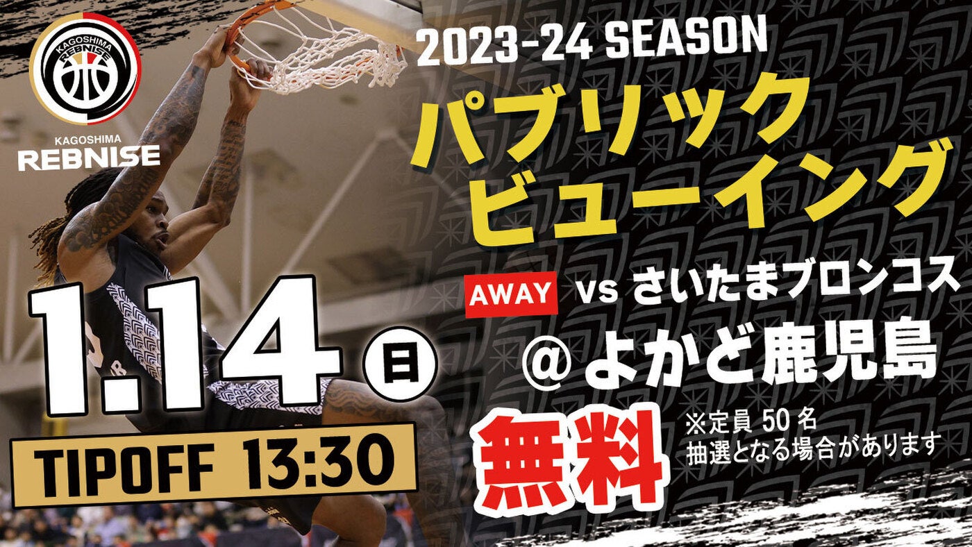 この度、鹿児島レブナイズでは、1月14日(日)にアウェーで行われるさいたまブロンコス戦のパブリックビューイングを『よかど鹿児島』にて開催することとなりましたのでお知らせいたします。