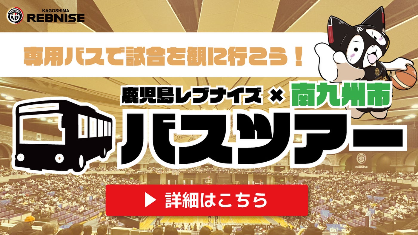 この度、鹿児島レブナイズでは、2024年2月12日(月・祝)の西原商会アリーナ開催のホームゲームに合わせて「南九州市民限定鹿児島レブナイズ応援ツアー」を実施することとなりましたのでお知らせいたします。