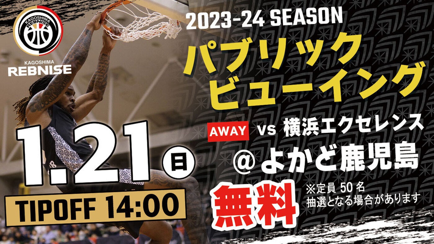 この度、鹿児島レブナイズでは、1月21日(日)にアウェーで行われる横浜エクセレンス戦のパブリックビューイングを『よかど鹿児島』にて開催することとなりましたのでお知らせいたします。