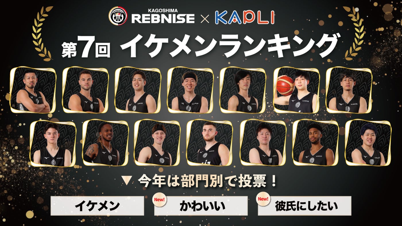 KAPLI内の特設ページから、あなたが選ぶ鹿児島レブナイズの『イケメン』『かわいい』『彼氏にしたい』選手にそれぞれ投票をお願いいたします。