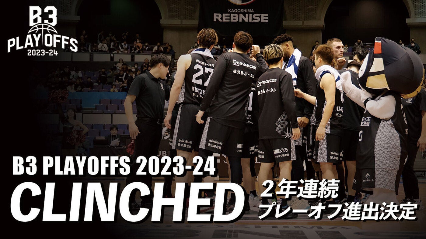 この度、鹿児島レブナイズでは、第22節の2024年3月9日の試合結果を以って、レギュラーシーズン8位以上が確定し、「B3リーグ プレーオフ 2023‐24」への進出が決定しましたのでお知らせいたします。