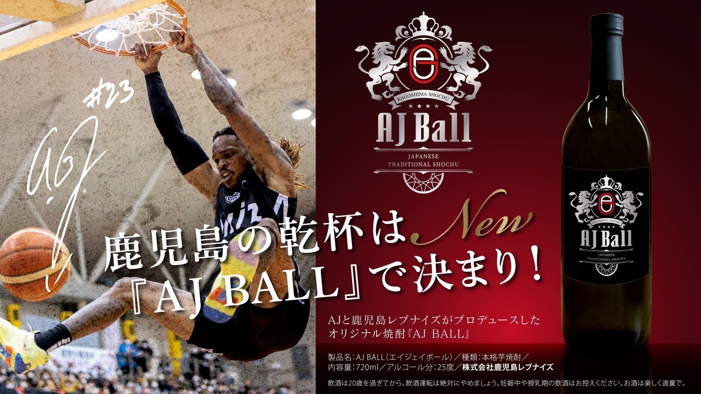 「焼酎はとても美味しい。海外でももっと多くの方に飲んでもらいたい。」日本のバスケットボールトップリーグに所属する鹿児島レブナイズで3シーズン目を迎え、今季もチームのエースとして活躍するアンソニー・ゲインズJR(以下、「AJ」)選手の一言からこのプロジェクトは始まりました。アメリカ出身のAJ選手は来日し、初めて芋焼酎「DAIYAME(濵田酒造)」と出会いました。フルーツのような華やかな香りに驚き、オフシーズンにはチームのメンバーたちと楽しんでいます。鹿児島をもっと盛り上げたい。この魅力を多くの方々へ届けたい。鹿児島レブナイズもその想いに応えるべく、濵田酒造様へご相談したところオリジナル芋焼酎の生産に協力の快諾をいただきました。構想から約1年間、皆様から多くのお力添えをいただきながら試行錯誤を重ね、ついに『AJ BALL』が完成しました。鹿児島で活躍する外国籍スポーツ選手、プロスポーツチームそして酒造メーカーが共同で開発したオリジナル焼酎は過去に例を見ない逸品であり、それぞれの特性を最大限活用し地元鹿児島を更に盛り上げる素晴らしいプロジェクトであると自信を持っております。伝統の芋焼酎を鹿児島の皆様、日本全国の皆様さらには海外の皆様にも味わっていただきたく4月6日(土)の鹿児島レブナイズホーム戦より発売いたします。