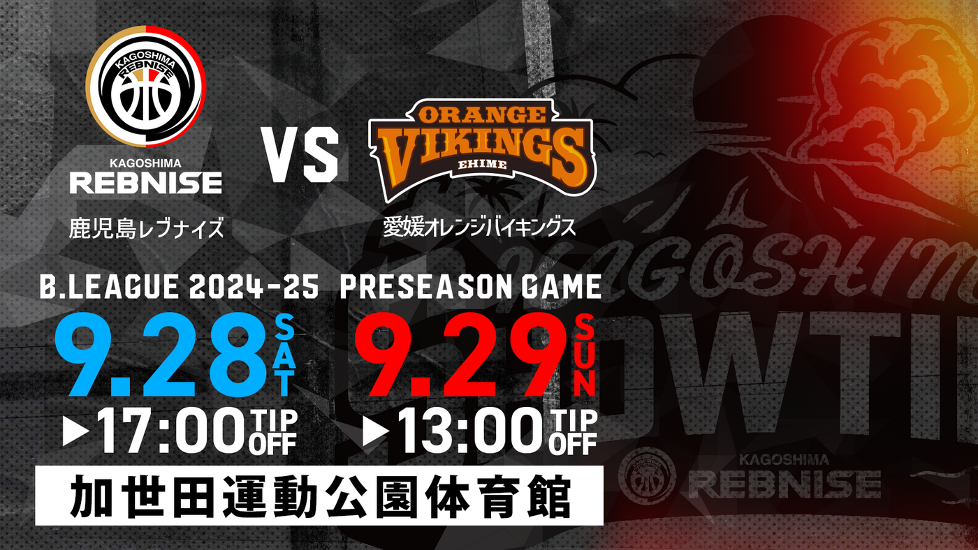 この度、鹿児島レブナイズでは、愛媛オレンジバイキングス(B2)とのプレシーズンゲームの開催が決定しましたのでお知らせいたします。