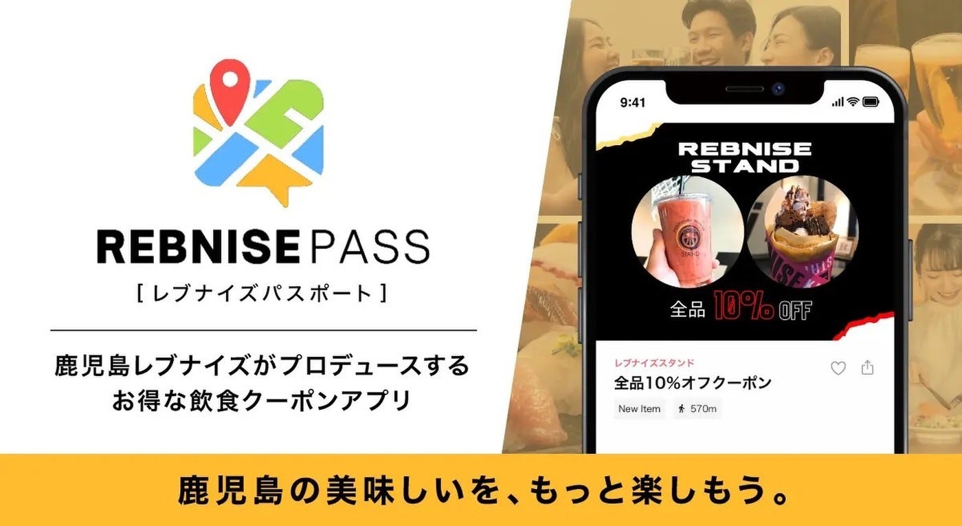 本アプリは鹿児島レブナイズがプロデュースし、Wizと共に鹿児島県内の飲食店と飲食店を利用するお客様を応援し、地域活性化に貢献していきます。