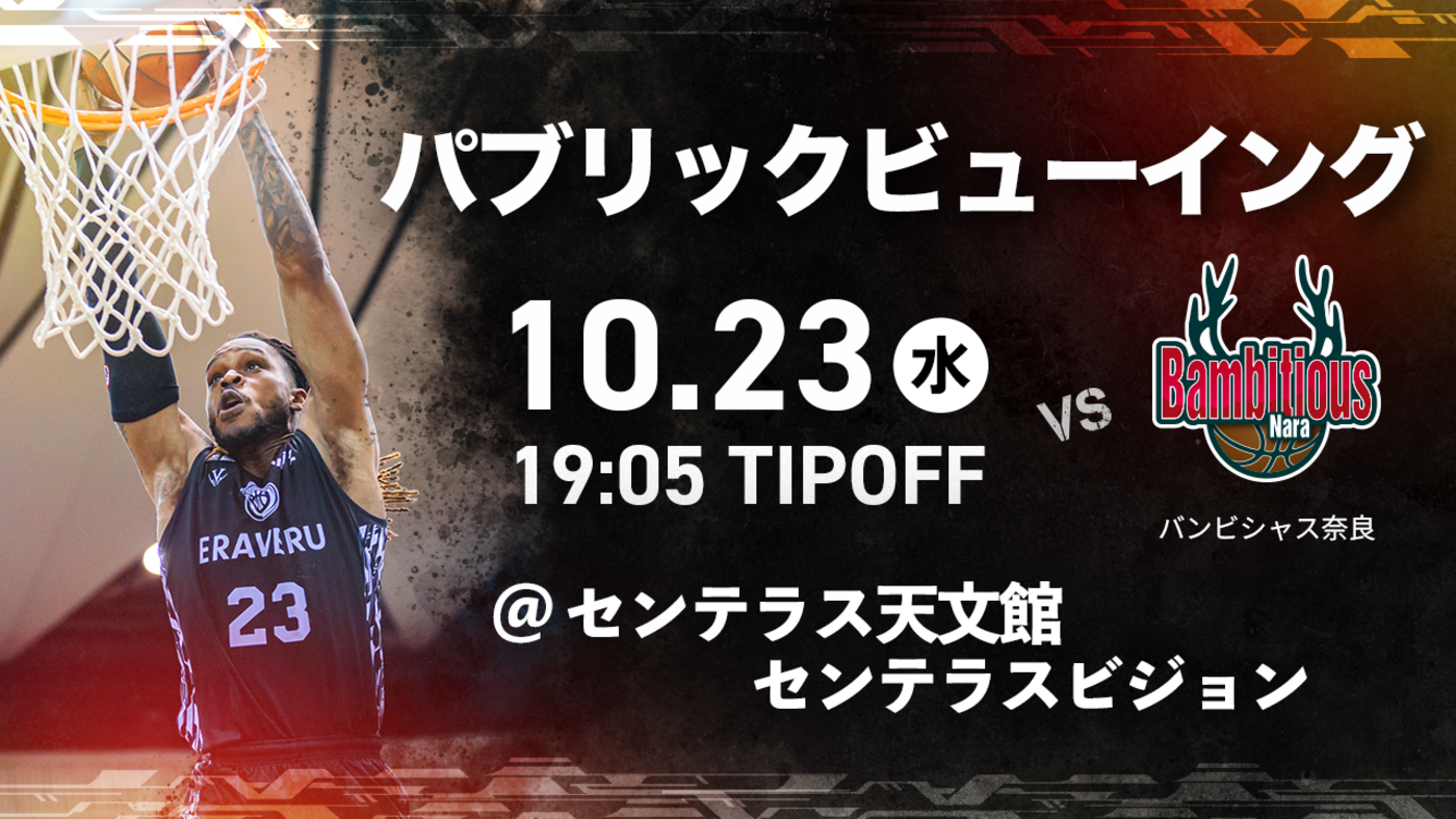 この度、鹿児島レブナイズでは、10月23日(水)アウェーバンビシャス奈良戦のパブリックビューイングをセンテラス天文館の約340インチの大型ビジョンにて開催することが決定しましたのでお知らせいたします。