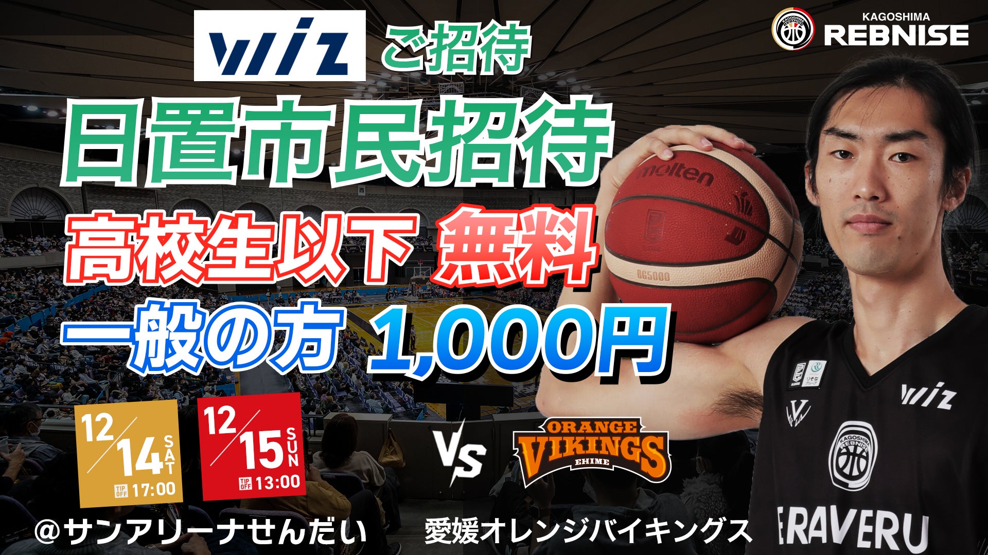 南さつま市でのプレシーズンゲームで戦った愛媛オレンジバイキングスとの再戦。地域連携協定を結んだ薩摩川内市をバスケで盛り上げるべく、11月の富山戦の雪辱を果たす。ブースターと共にレブナイズが連勝街道を切り開く!!