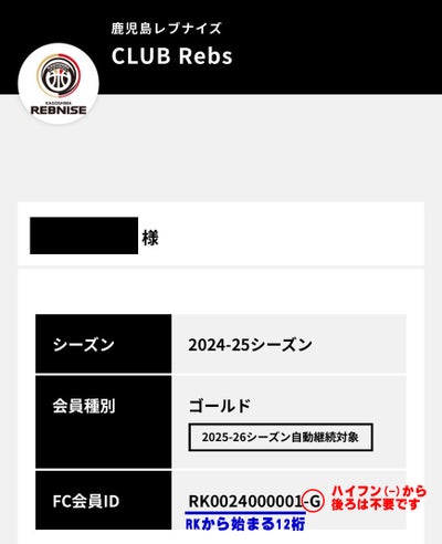 ② 下記URLよりレブナイズファンクラブにご入会ください。 ▶ご入会はこちらから ③ 入会手続き内のアンケートフォームにて、「ファンクラブ入会のきっかけ」にご紹介者様の「FC会員ID(RKから始まる12桁)」をご入力ください。 例:RK0024000001 |
