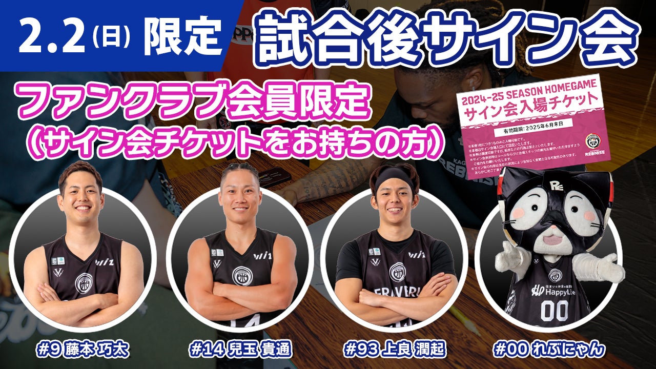 実施予定選手:藤本 巧太選手、兒玉 貴通選手、上良 潤起選手、れぶにゃん
