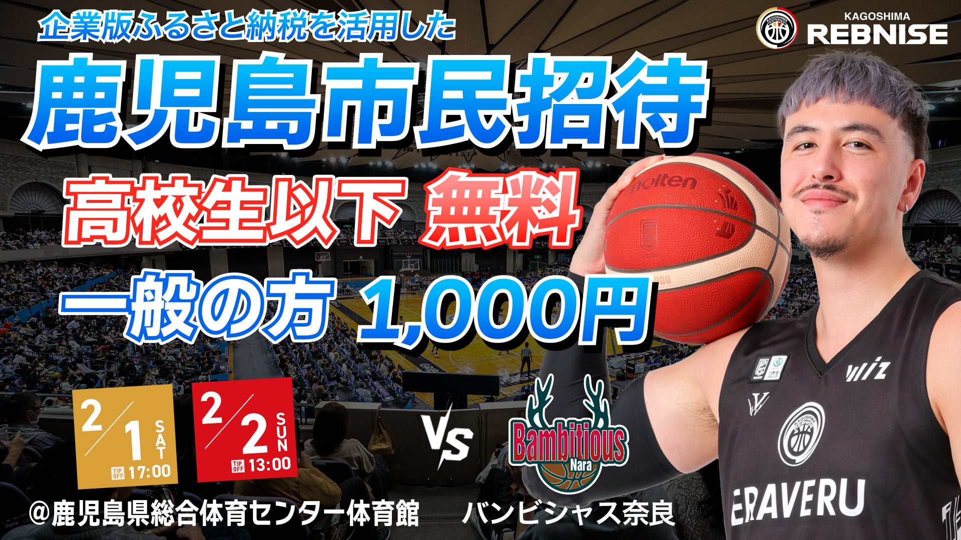 2月に入り、シーズンもラスト3か月を残すだけとなった。プレーオフに向けて、今まで以上に一戦一戦が大切になる。県体育館の今シーズンのラスト2試合を勝ち切り、レブナイズは終盤戦への連勝街道を突き進む。2000人を超えるレブズが県体育館を沸かす!