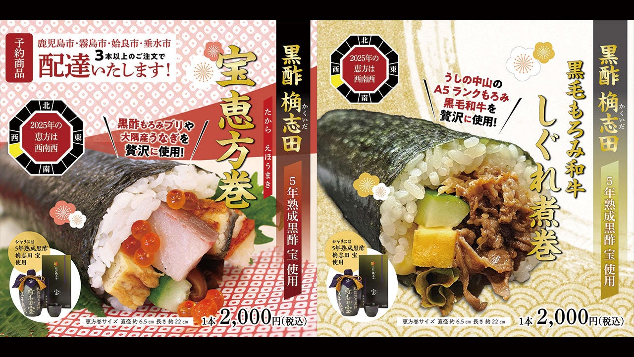 5年熟成 桷志田 宝を使用した「宝恵方巻」と「黒毛もろみ和牛のしぐれ煮巻」の2種類販売✨
