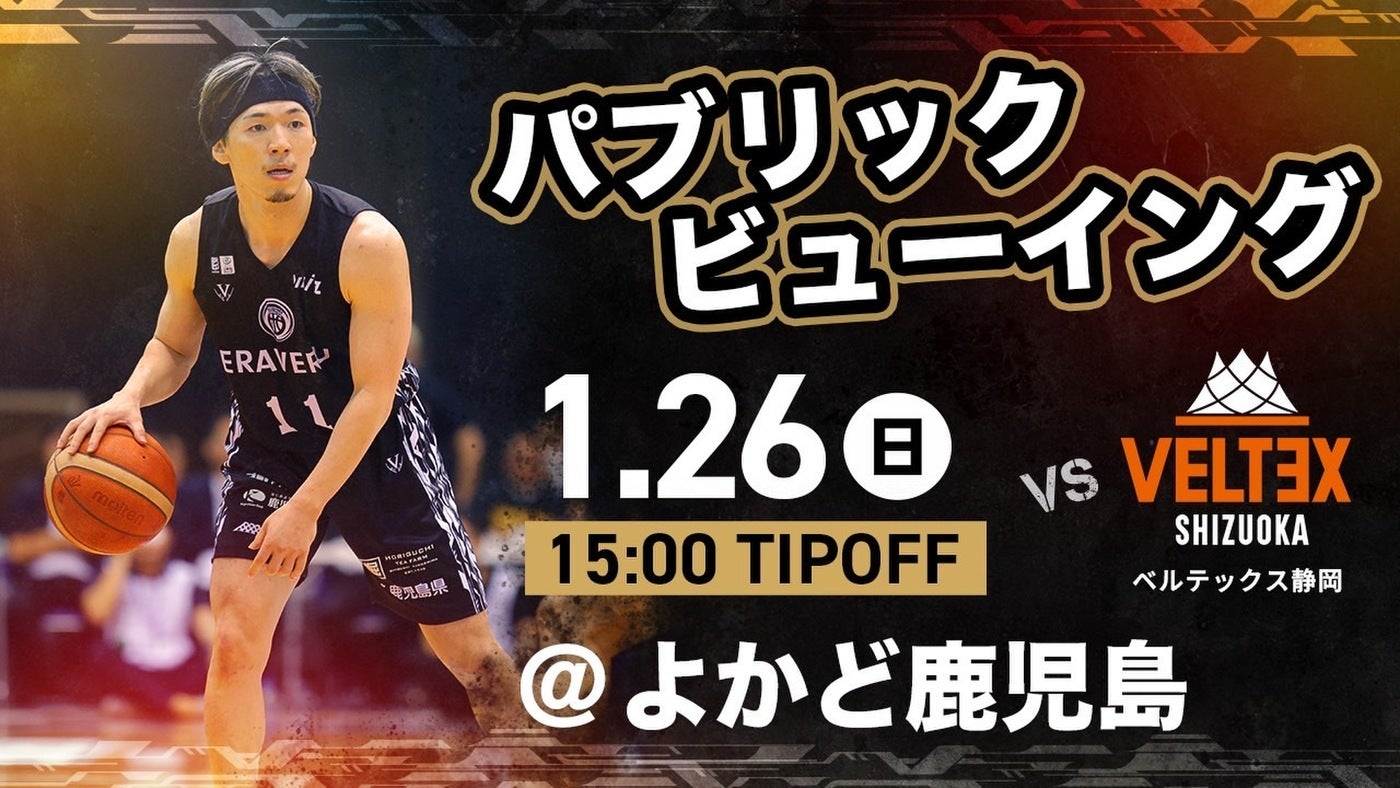 この度、鹿児島レブナイズでは、1月26日(日)にアウェーで行われるベルテックス静岡戦のパブリックビューイングを『よかど鹿児島』にて開催することとなりましたのでお知らせいたします。