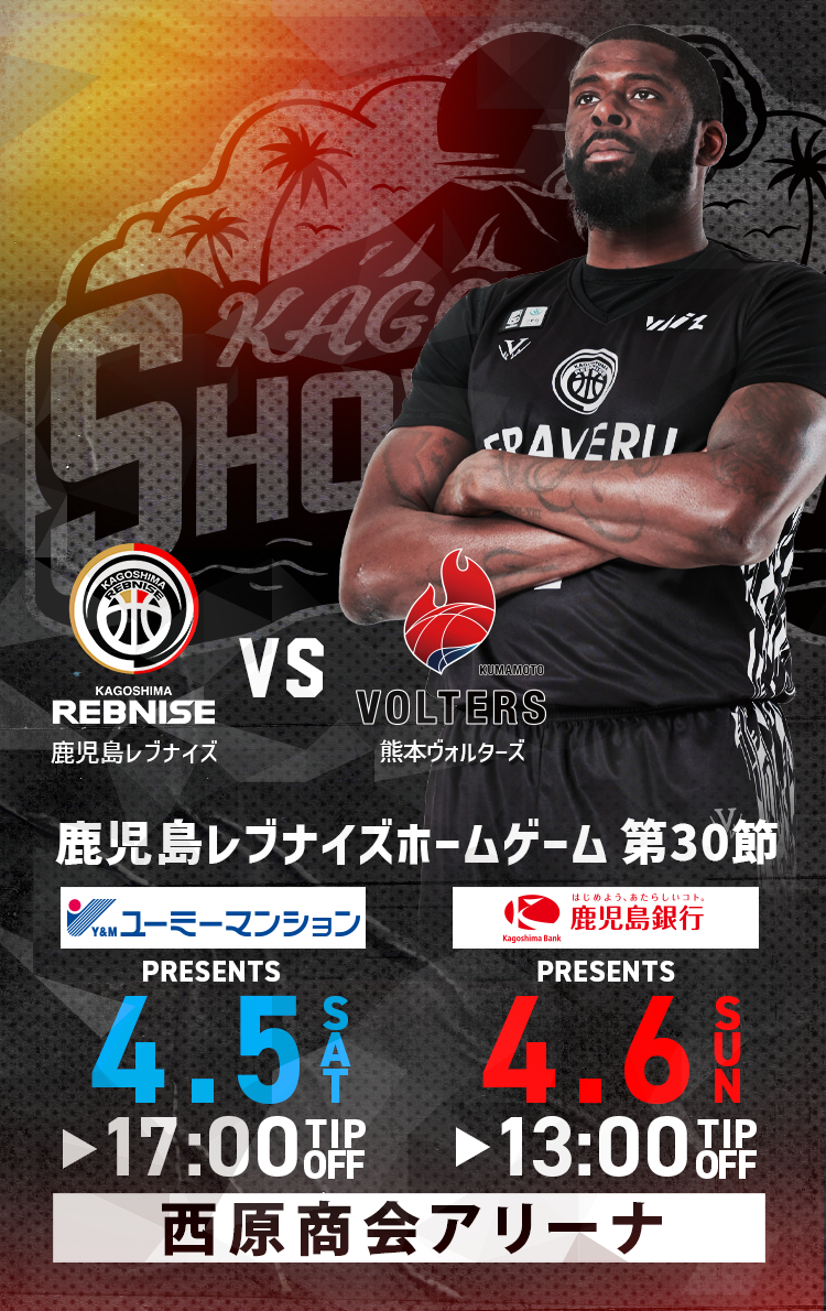 12月のアウェー熊本戦では1勝1敗の五分の成績とはいえ、宿敵熊本ヴォルターズを相手に初の勝利を掴んだ。残すはホームでの熊本からの勝利だ。シーズンもついに最終盤を迎えるこの一節。鹿児島と熊本のエナジーで西原商会アリーナが日本で一番アツいアリーナになる!