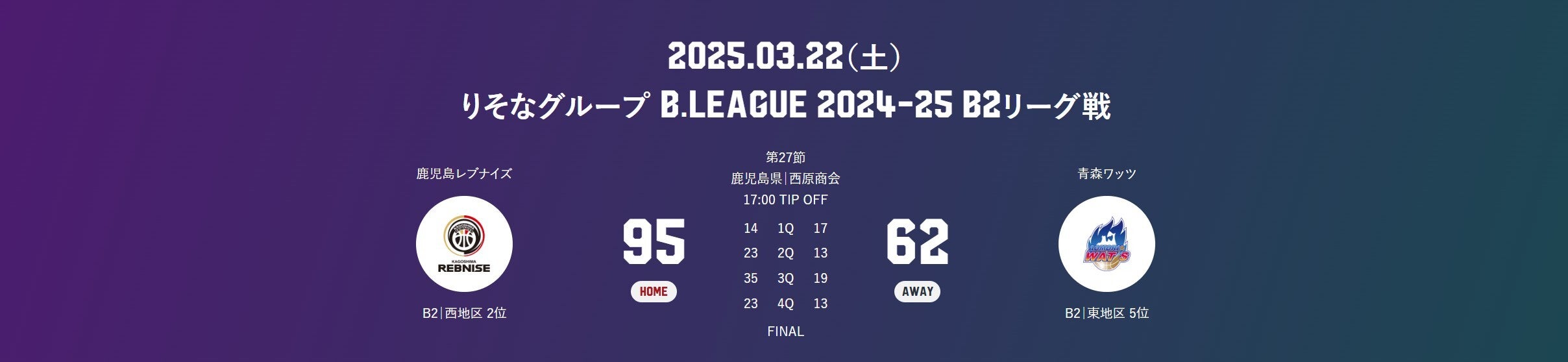 WIN!WIN!WIN!りそなグループ B.LEAGUE 2024-25シーズン 第27節(3/22)試合結果のお知らせ