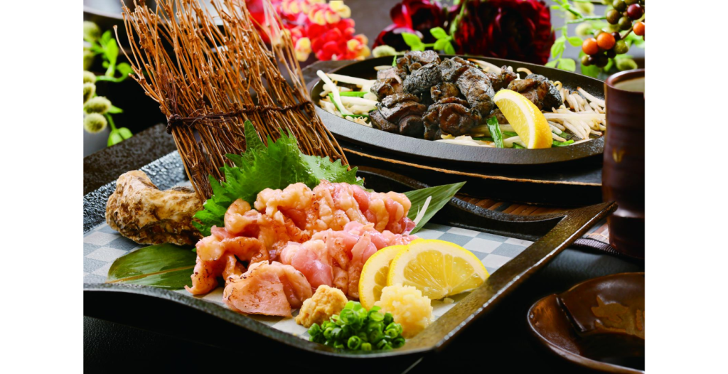 鹿児島県の最初の指定店として、歯切れの良さと旨みを堪能できる、鶏しゃぶやすきやき、炭火焼き、臭みのない鶏刺し、鶏飯など、多様なメニューが揃います。