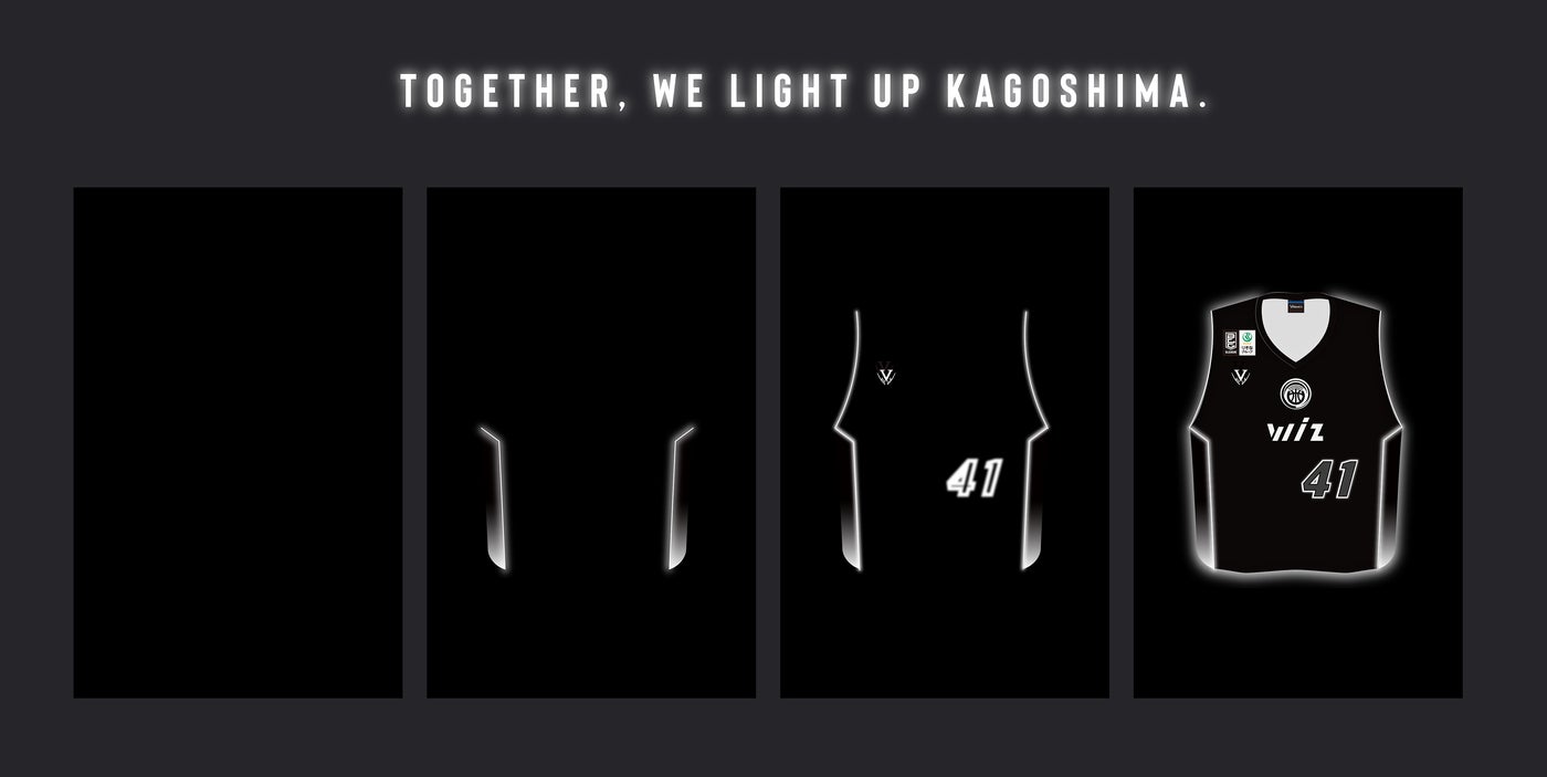 急速に成長を遂げるチームの勢いを、ネオンサインの光に重ね合わせ、鹿児島の未来を明るく照らす存在としての姿を表現したデザインです。