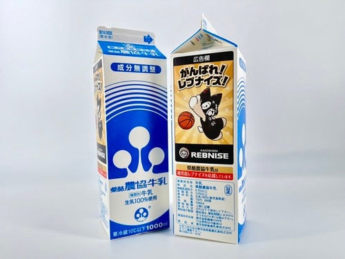 この度、鹿児島レブナイズでは、鹿児島県酪農乳業株式会社様のご協力のもと、れぶにゃんが掲載されたコラボ広告入り「県酪農協牛乳」が発売されることとなりましたのでお知らせいたします。