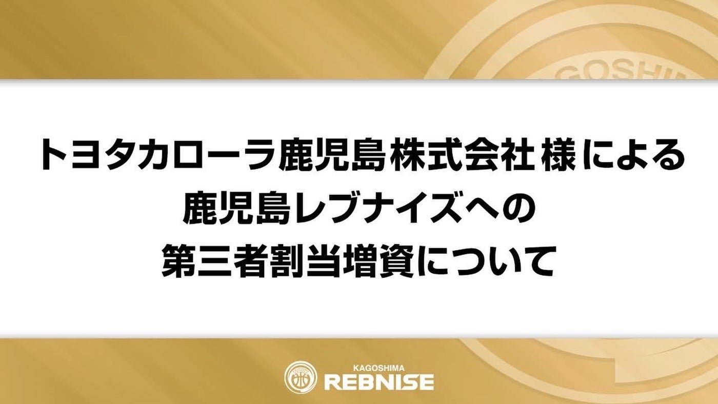 トヨタカローラ鹿児島株式会社様による鹿児島レブナイズへの第三者割当増資について