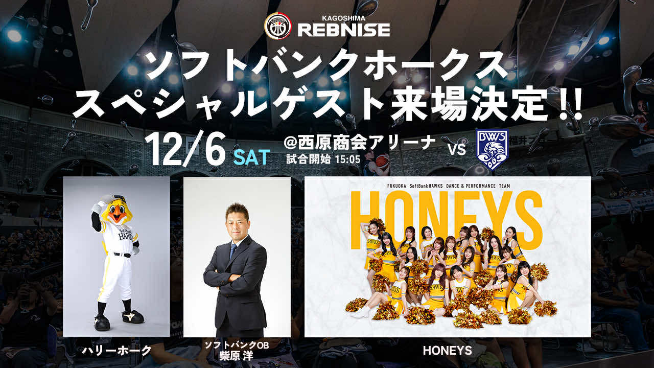 12月6日(土)のホームゲームに、日本一となった福岡ソフトバンクホークスからOBの柴原洋さん、パフォーマンスチーム ハニーズ、そして球団マスコットハリーホーク が登場します⚾️✨