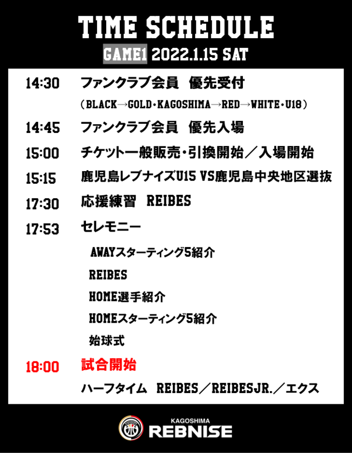 1月15日(土)試合開始 18:00/一般受付・開場 15:00 ※3時間前