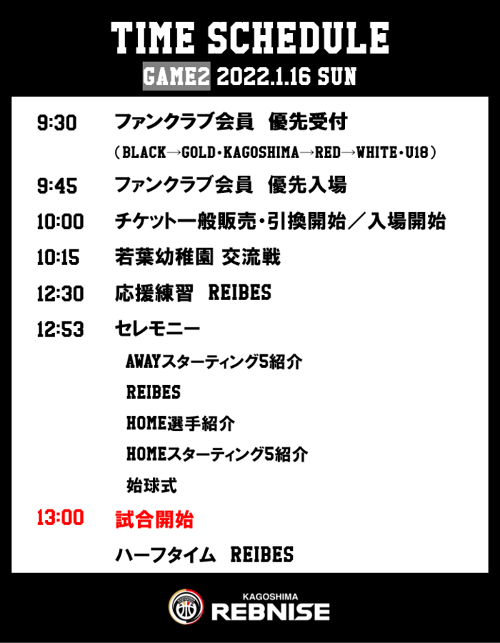 1月16日(日)試合開始 13:00/一般受付・開場 10:00 ※3時間前