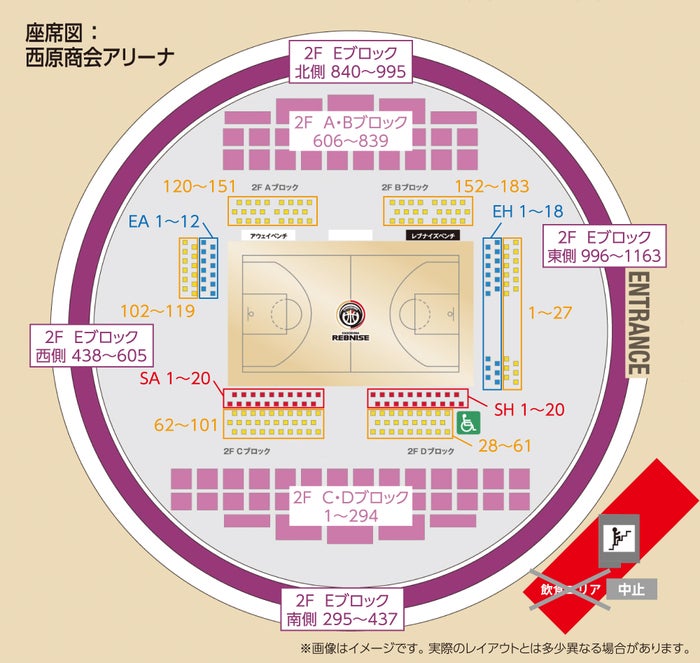 ※1F・2F席はご購入されたブロックにおいて先着順に前からご案内いたします。特定のお席をお選びいただくことはできません。