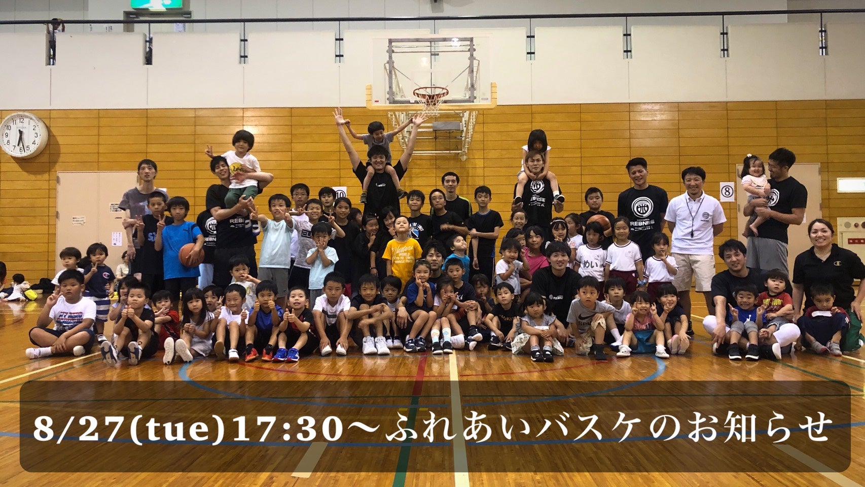 8/27(火)ふれあいバスケ(バスケットボール教室)及び公開練習のお知らせ